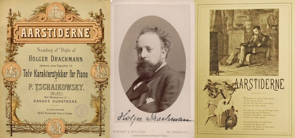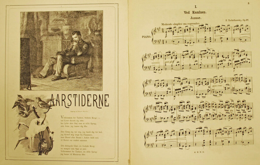 År 1881 gavs nämligen en ambitiös dansk utgåva ut i Köpenhamn: Aarstiderne. Här kombineras Tjajkovskijs musik med poesi och illustrationer av samtida konstnärer i en form som påminner om en kalender.